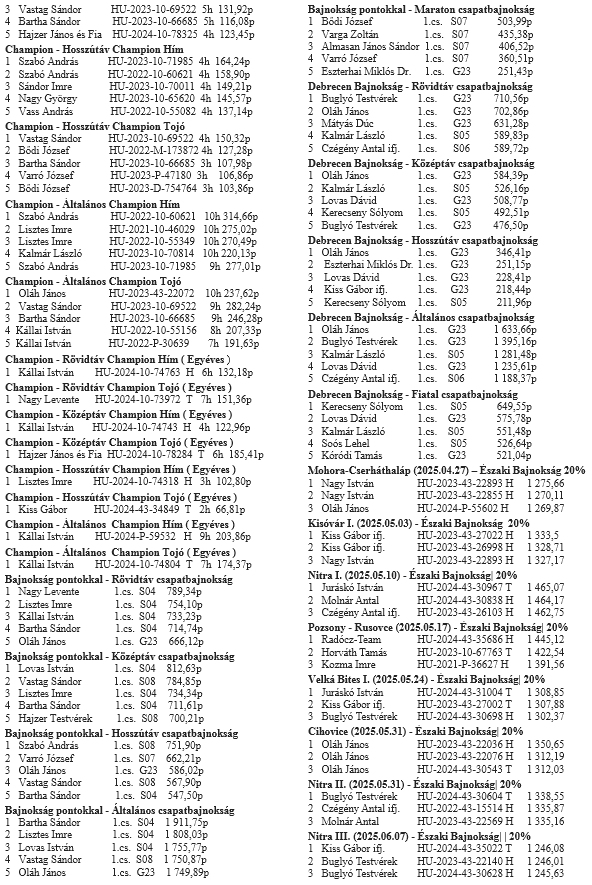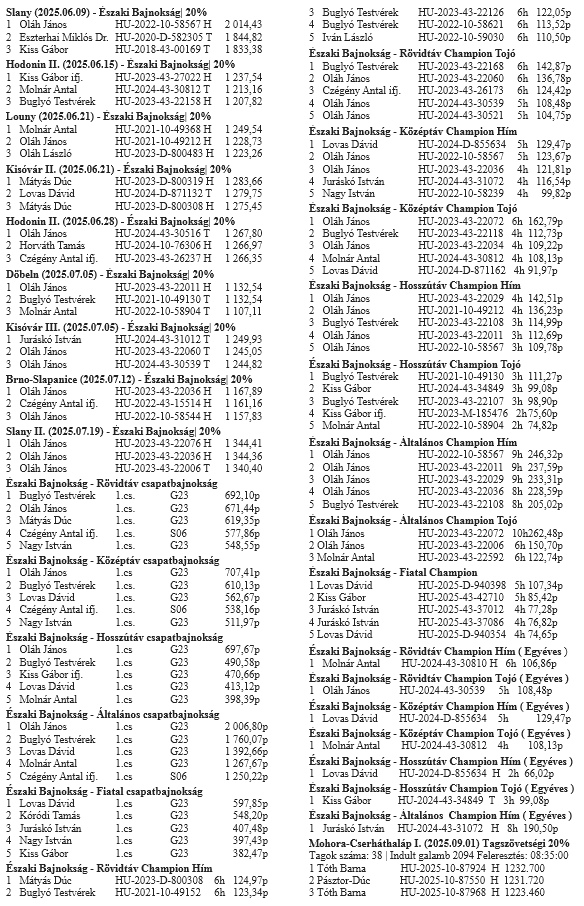 Kérnék mindenkit a fiatalok versenyein is az élgalambokat és élcsapatokat az érvényes versenyszabályzatban foglaltak szerint jelenteni a galambom.hu felületén, hogy kiugró eredmény esetén ellenőrzést lehessen végezni! (Ez alól az esetleges munkanapon (péntek, hétfő) megrendezésre kerülő verseny lehet kivétel, de azon is aki teheti tegye meg a jelentést.)