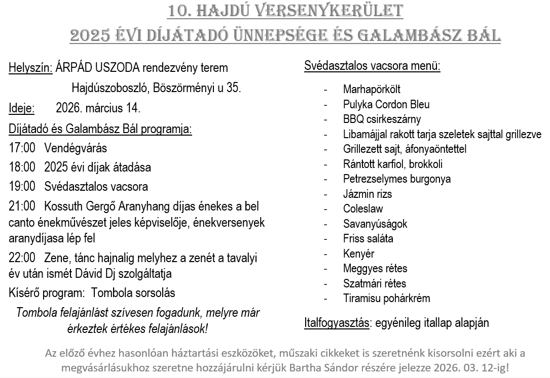 - Díjalap 150 Ft/galamb az első úton kosarazott létszám alapján.